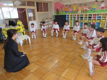 • 先週末、2月のお誕生会と年長児対象のお茶会を行いました。今月からはお誕生会の準備や司会進行役が年中組にバトンタッチされ、年中児は少し緊張気味でした。インタビューやお誕生日の歌やお話のプレゼント、最後には先生からの出し物がありました。その後、年長児は、幼稚園隣りの松林寺さんでお茶会を経験しました。保護者の方にも参加いただき、お茶の先生からお作法やお茶室の作りなど、興味深いをお話をうかがいました。