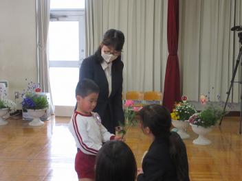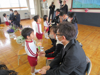 お花を渡して、卒園の歌を歌ったよ。