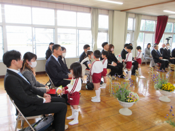 • 昨日、田んぼの活動でお世話になっている地域シニアボランティアの方に感謝する「ありがとうの会」を行いました。和田幼稚園の年長・年中組の園児といっしょに、お礼の言葉を伝えたり、手作りの花束を渡したり、感謝の歌を歌ったりして感謝の気持ちを伝えました。シニアボランティアの方々からは「小学校に入ってもがんばるように」と励ましの言葉をいただきました。会の後、学年ごとに遊んだり、プレゼントの交換をしたりしました。