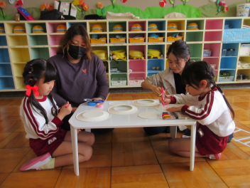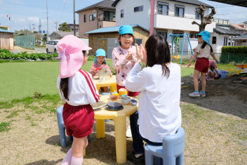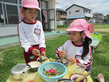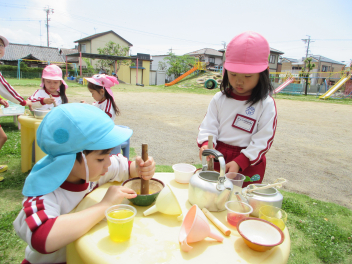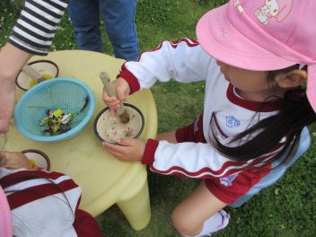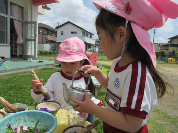 年中さんは戸外で色水遊びをしました