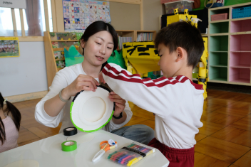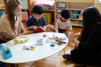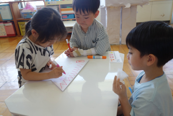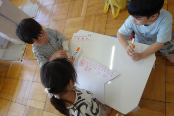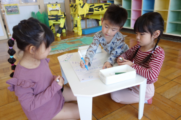 年中さんも目玉?のようなものをのりで貼りつけていますね