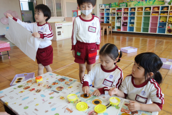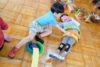 • 雨がぽつぽつと降るあいにくの天気だったので、今日はみんなで遊戯室で遊びました!
