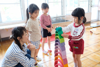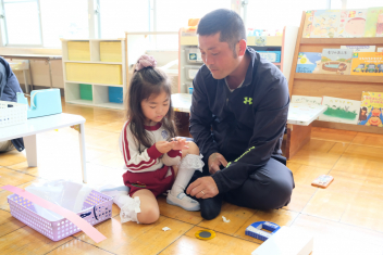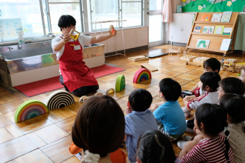 • 浜松山里いきいき応援隊の平野健寿さんにお越しいただき、全園児がたくさんの種類の木のおもちゃで遊ばせてもらいました。