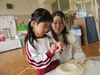 年長さんはフリスビーを親子で作りました!