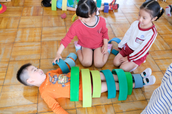 一つの木のおもちゃでいろいろな遊び方ができることを教えてもらったねsad