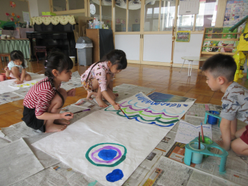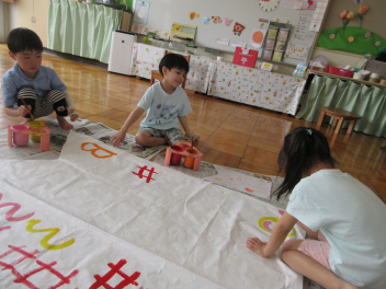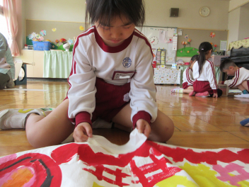 年長さん、今日は2つのグループに分かれて鯉のぼりづくりを始めました!