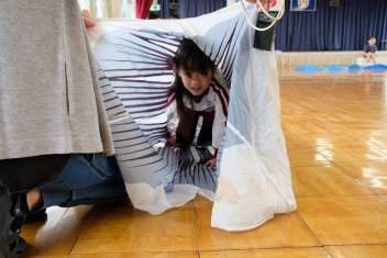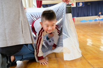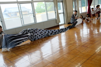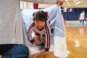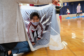こいのぼりの尻尾から次から次へと子どもたちが出てきますwink
