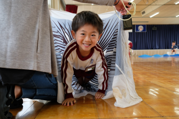 子どもたちはこいのぼりくぐりがお気に入りで、何度も何度もこいのぼりのトンネルをくぐって楽しみましたsad