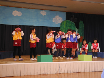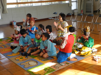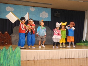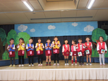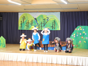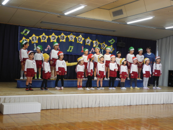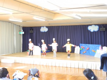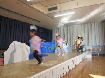 昨日、生活発表会の総練習を行いました。保護者ボランティアの方々にも協力いただき、当日の流れを確認しながら進めました。園児たちは、他学年の園児や保護者ボランティアが見ているなかだったので、いつもと違う緊張を感じているようでした。生活発表会まで残り4日とですが、それぞれにもっと楽しく演じられるようにがんばっています。