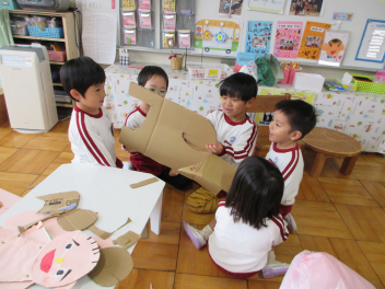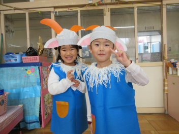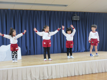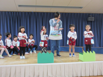 昨日、生活発表会の総練習を行いました。保護者ボランティアの方々にも協力いただき、当日の流れを確認しながら進めました。園児たちは、他学年の園児や保護者ボランティアが見ているなかだったので、いつもと違う緊張を感じているようでした。生活発表会まで残り4日とですが、それぞれにもっと楽しく演じられるようにがんばっています。
