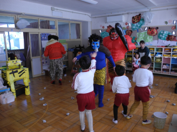 えいっ!鬼は外だよ。みんなの元気に負けて逃げて行ったよ。