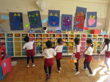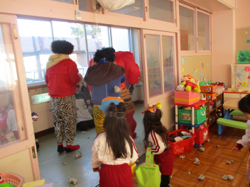 うわー、年長児の部屋に入ってきたよ。「鬼は外!」