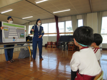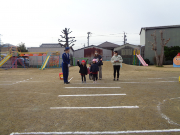 年少組と年中組は道路の歩き方を教えてもらったよ。