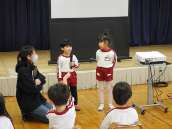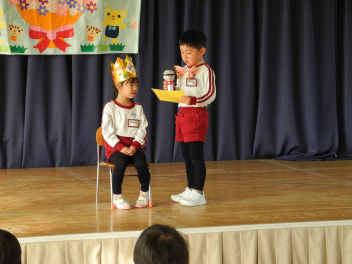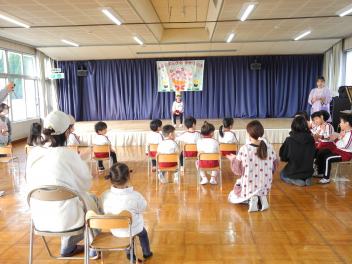 年少から年長までみんな集まって生活発表会ごっこしたよ。