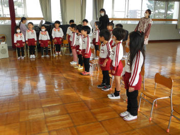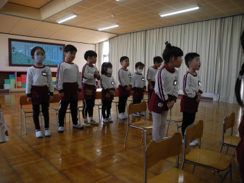 始業式で園歌や十二支の歌をみんなで歌ったよ。