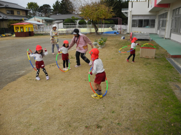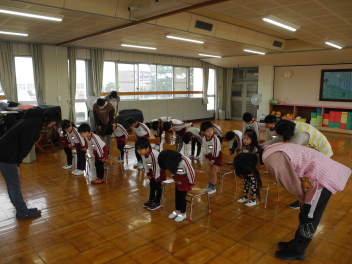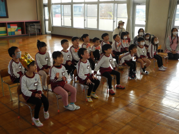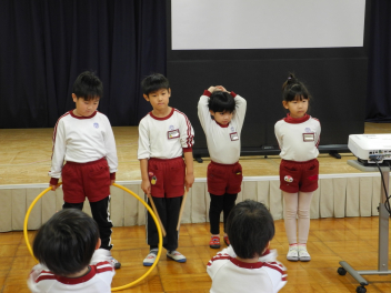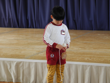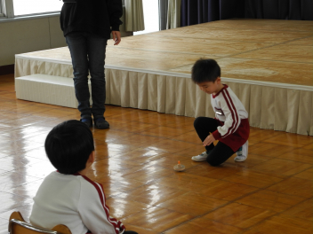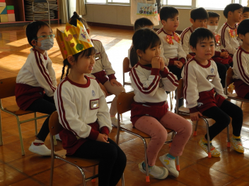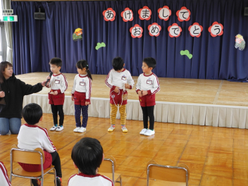 • 昨日から3学期が始まりました。久しぶりに友達に会え、園児たちはとてもうれしそうでした。始業式では代表園児が冬休み中にがんばったことや楽しかったことを発表し合いました。また、お正月ならではの遊び、コマ回しや福笑い、けん玉を教師が実演し、園児の歓声が幼稚園中に響いていました。