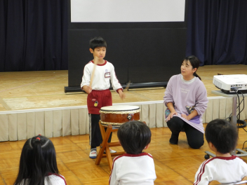 オープニングは年長児の和太鼓。和太鼓の先生も見に来てくれたよ。