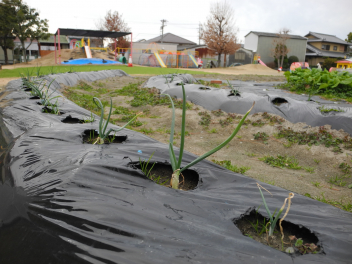 みんなで植えたタマネギのあかちゃんも少し大きくなったよ。