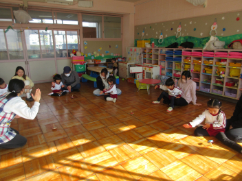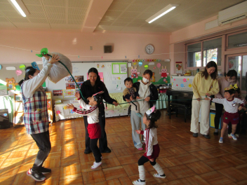 うわー、年長児の部屋に入ってきたよ。「鬼は外!」