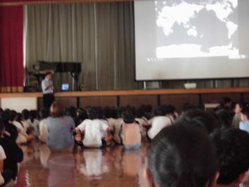 代表の子供たちは、全校児童の前で少し緊張しながらも、しっかりと発表をしていました。発表者も聞き手もみんなキラキラと輝いていました。