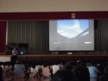 校長先生からは、夏休みに撮影した山の写真の紹介がありました。写真やお話から、山登りの大変さや楽しさ、なかなか見ることのできない山の風景の美しさが感じられました。
