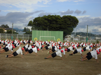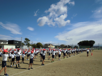 どの学年団でも、運動場いっぱいに広がり、体を大きく動かして表現しています。