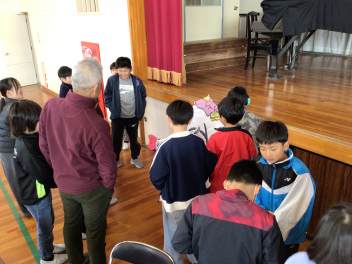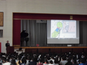 校長先生は、イソップ物語「アリとキリギリス」のお話から、コツコツ積み重ねていくことの大切さや困っている人への接し方、頑張って取り組むことの意味などについて優しく、丁寧にお話してくださいました。