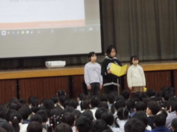 2学期に頑張った様子や年度末に向けての目標を力強く発表する子供たちに、惜しみない拍手が送られました。