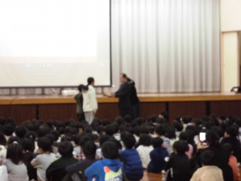 1年生の児童は、友達と励まし合いながら宿題の「書きとり」に取り組んでいることや、困っている友達にやさしく教えて「ミニ先生」になろうと頑張っていることの発表がありました。