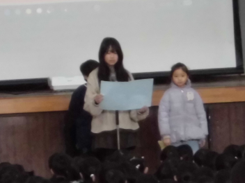 始業式は、2・4・6年生が3学期の抱負を語りました。