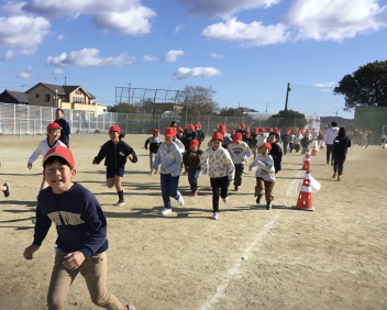 体力の向上を目指して、20分休みには運動場で一生懸命に走っています。