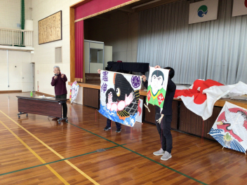子供たちは、迫力のあるさまざまな凧を見せていただき、2月に行う凧づくりに向けて意欲を高めていました。
