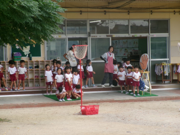 子供たちは、お家の方と一緒に玉入れができて、とても嬉しそうでした