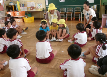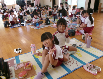 年少、年中児は初めて上島幼稚園の友達に会いましたfrown嬉しくて、嬉しくて、みんなでおもてなしsmiley