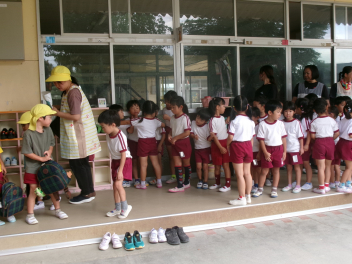 年少児も、友達に声を掛けたり、靴を入れるところを教えてあげたりしていました