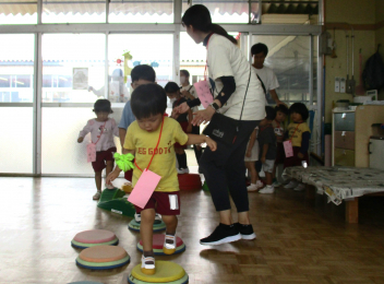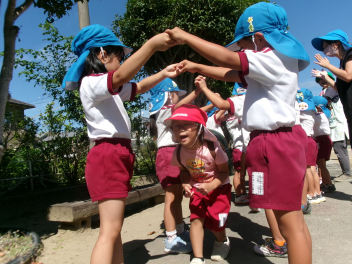 子供たちが大好きな歌『手のひらを太陽に』。音楽に合わせて踊ることを楽しんできました。振りを覚え、上手に踊れるようになった頃、キラキラのポンポンを先生からもらいました