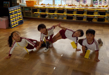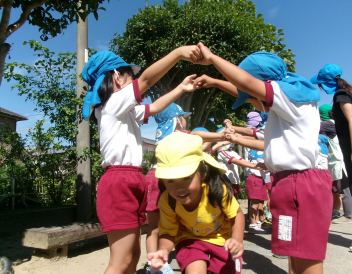 これはもしかして・・・運動会で年長児が披露した組体操の真似かな??
