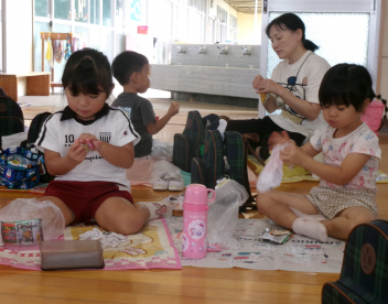 子供たちはおやつを食べることを楽しみにしていましたあっという間に食べ終わり、笑顔がたくさん見られましたsad