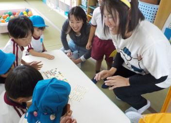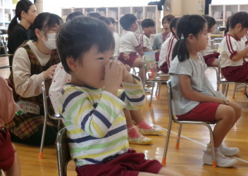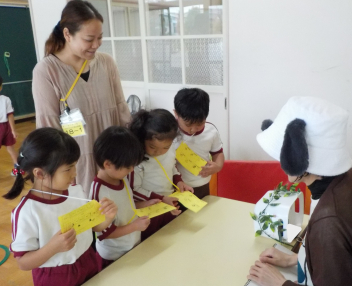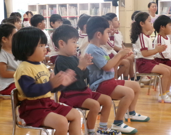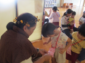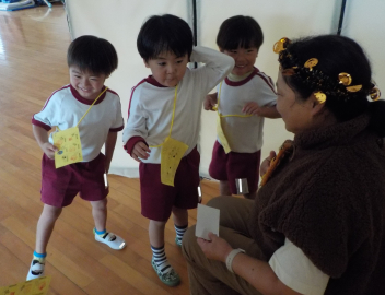 年少児が喜んでくれる様子を見て、年中児もとても嬉しそうでした