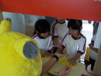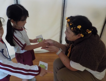 ゴールは『森のお姉さんblush』に扮した園長先生から、キラキラのごほうびシールをもらうことができました