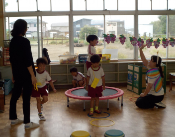 普段あまり使ったことがない、ミニトランポリンで遊びました