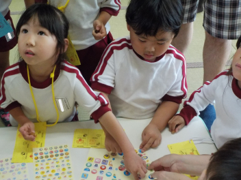 年長児はグループ活動でしたが、一人一人頑張ったということで、ごほうびシールは1人1枚ずつもらうことができました