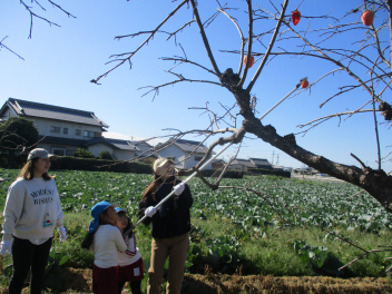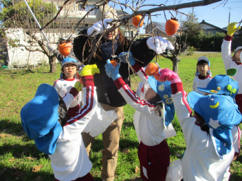 自分の分の柿を採った後は、年少さんや年中さんにおみやげ用の柿を、張り切って採ってくれました