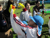 柿の固さや紐を引っ掛けて干すことができるよう、枝を「T]の形になるように切れているかを確認したり、手伝ってくださった地域の方や参加保育の方に、その都度「ありがとう」と言っていたりして、年長さんの成長を感じることができました