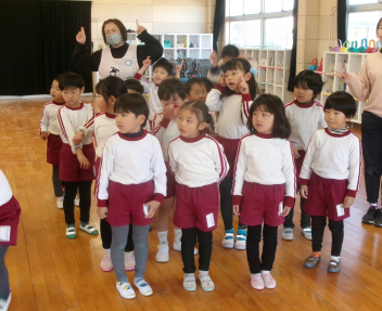 年少児は、見たことのあるお兄さん、お姉さんの顔を見て、ひと安心smiley