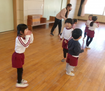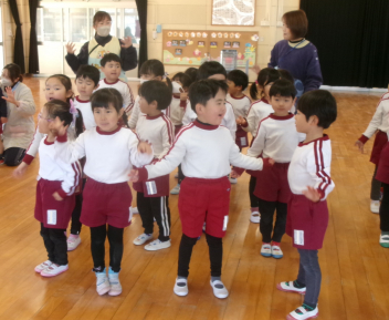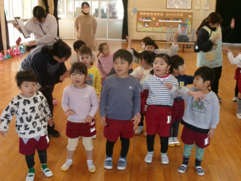 「おにはそと~、ふくはうち~」ところどころ振りを付けながら、元気よく歌うことができましたwink