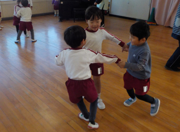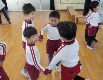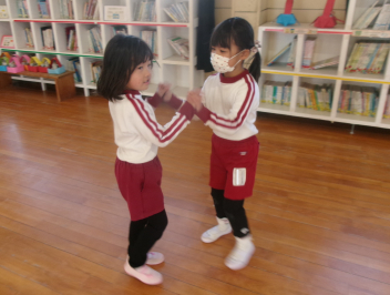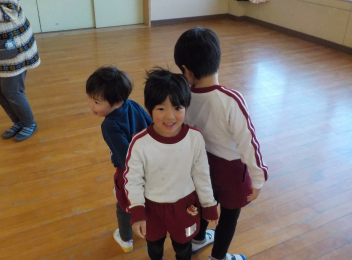 おひさまタイムで踊ってきた踊りを、なかよしグループの友達と一緒に踊りましたお互いに異年齢の友達の顔を覚え、子供たち同士で声を掛け合う姿が見られるようになってきましたsad