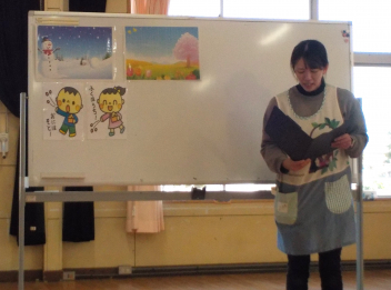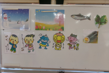 豆まき会では、絵表示を使って、節分についての話をしましたlaugh
