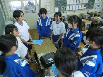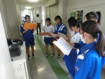 放課後の職員室、明日行われるスピーチコンテスト県大会に出場する3年生小楠さんが職員の前でリハーサルを行っていました。