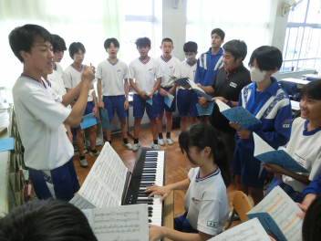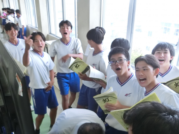 昼休みは、2年生が学年僥倖の練習をしていました
